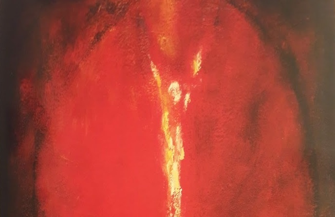 Quant à Dieu lui-même, Jésus tient à rassurer Nicodème à son sujet : « Car Dieu a envoyé son Fils dans le monde, non pas pour juger le monde, mais pour que, par lui, le monde soit sauvé » (Jn 3,17). Et on peut voir toute la peinture comme inondée de cet Amour : toute cette couleur rouge, qui semble dégringoler depuis le ciel par un trou percé dans l’ovale au sommet du tableau. On dirait une cascade de sang répandu, d’amour déversé dans tout cet espace, luttant encore contre des traînées sombres, mais finissant par baigner les deux témoins d’une atmosphère protectrice et vivifiante. Un utérus ? Ces deux-là, sans peut-être le savoir, sont en train de renaître. Jésus l’avait bien dit à Nicodème au début de leur conversation : « Ne sois pas étonné si je t’ai dit : il vous faut naître d’en haut » (Jn 3,7).