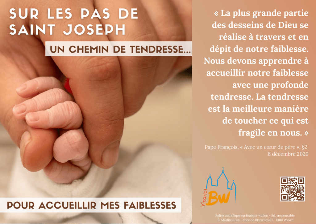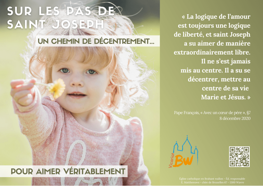 En cette année dédiée par le Pape à la très inspirante figure de saint Joseph, nous vous proposons un outil à partir de six attitudes soulignées par le Pape dans sa lettre Patris corde. Elles ont fait l’objet de six affiches et de six vidéos à utiliser individuellement ou en paroisse. Les deux supports se complètent et permettent d’effectuer un cheminement, à son rythme, marqué par les six attitudes spirituelles du père adoptif de Jésus : accueil, tendresse, créativité, développement, dépossession et décentrement.