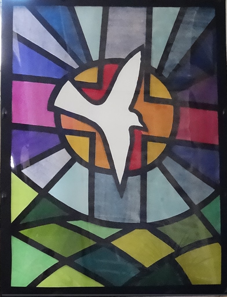 Après sa mort sur la croix, Jésus n’abandonne pas ses apôtres : il leur envoie son Esprit Saint. Cette neuvième étape nous fait découvrir un vitrail du 21e siècle 😊