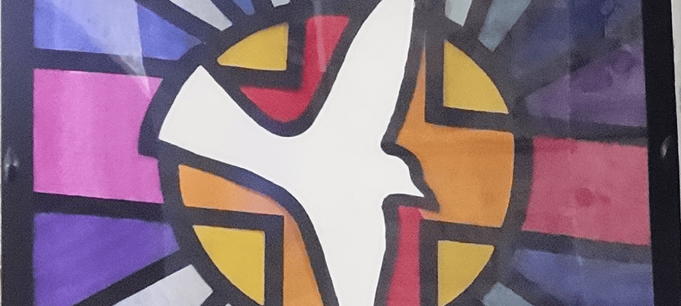 Après sa mort sur la croix, Jésus n’abandonne pas ses apôtres : il leur envoie son Esprit Saint. Cette neuvième étape nous fait découvrir un vitrail du 21e siècle 😊