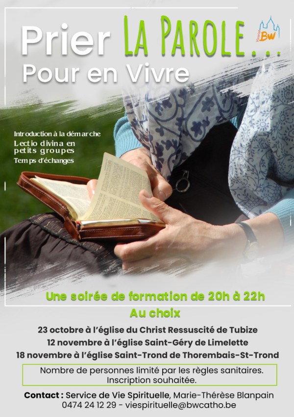 Trois soirées pour entrer dans la Lectio divina DECOUVRIR LA LECTIO DIVINA ou « PRIER LA PAROLE … pour en vivre » Afin de faire goûter à la lecture priante de la Bible (ou Lectio divina) en équipe, le service VIE SPIRITUELLE organise trois soirées de découverte, une dans chaque zone de notre Vicariat. Après une brève... Lire la Suite →